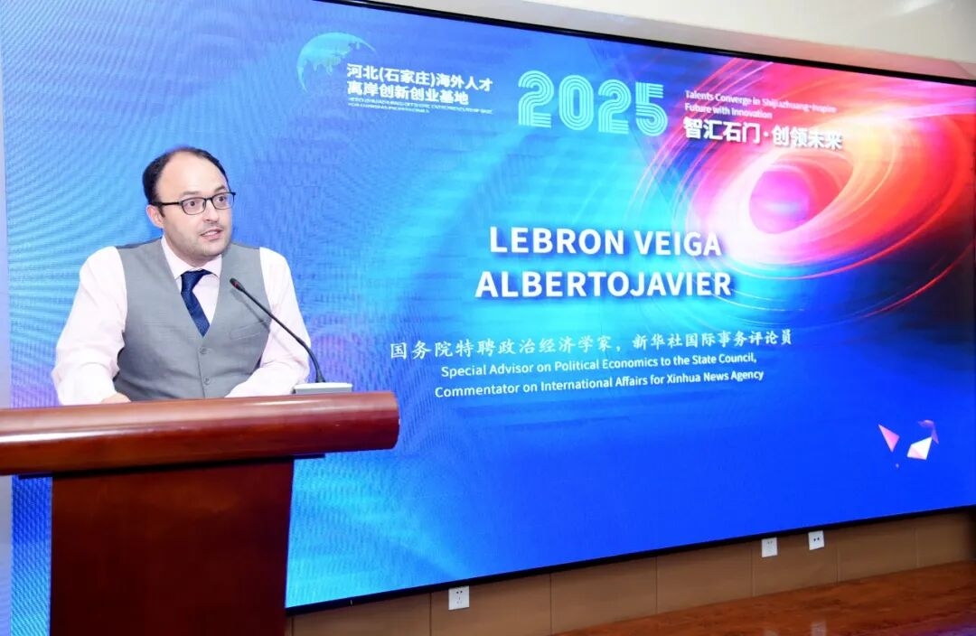 颁奖典礼现场,国务院特聘政治经济学家、新华社国际事务评论员阿尔贝托先生进行了致辞。高度肯定了大赛在汇聚海外优质创新资源、搭建中外人才交流合作平台方面的重要作用。结合全球创新发展趋势与中国人才战略布局,深入浅出地分析了海外人才创新创业的机遇与潜力,鼓励更多海外人才把握机遇,依托石家庄良好的发展环境与平台优势,实现创新梦想与价值提升。